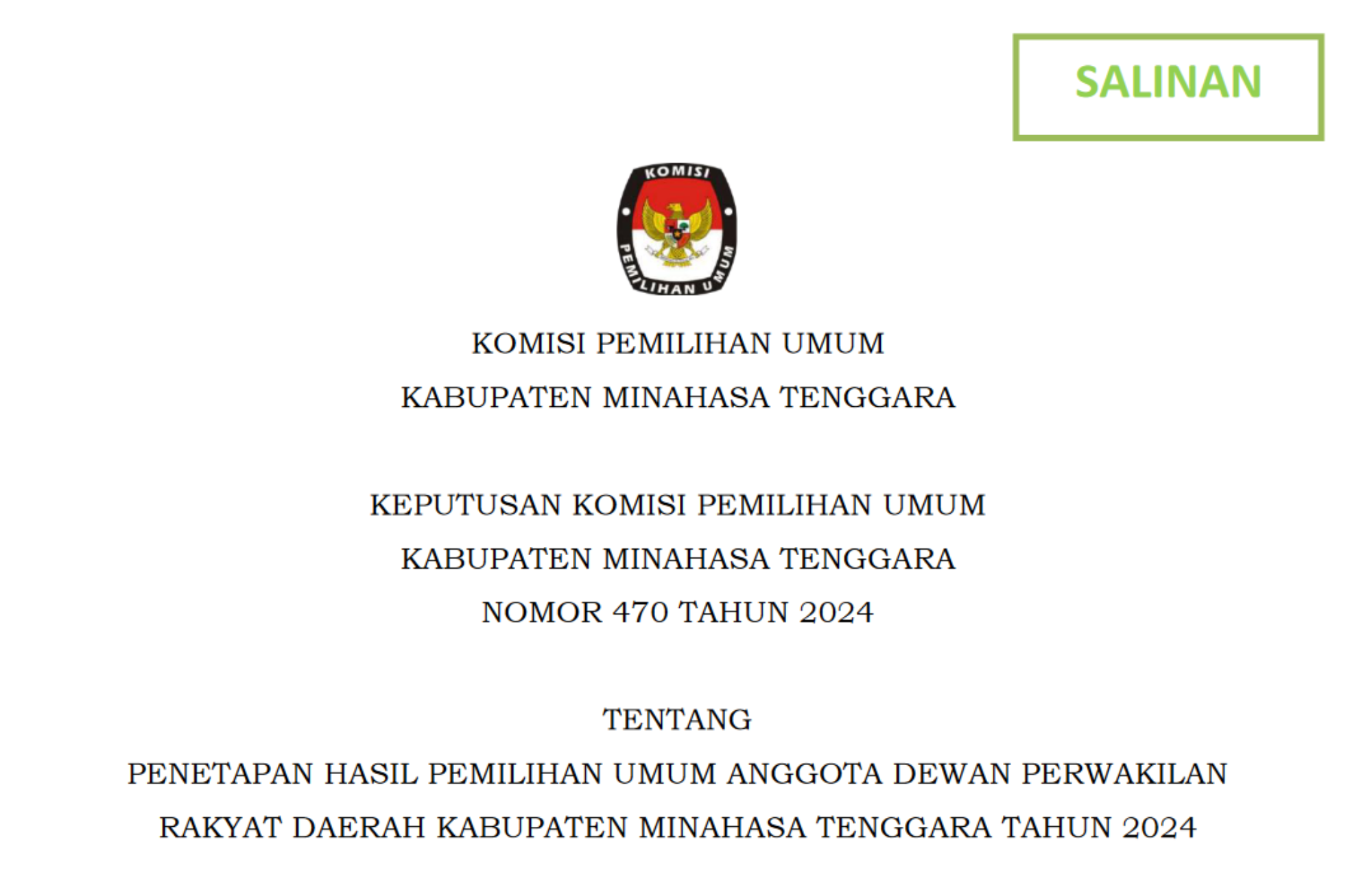kab-minahasatenggara.kpu.go.id, Ratahan - Komisi Pemilihan Umum (KPU) Kabupaten Minahasa Tenggara (Mitra) mengeluarkan Salinan Surat Keputusan Perbaikan Hasil Pemilu Anggota DPRD Kabupaten Mitra Tahun 2024.