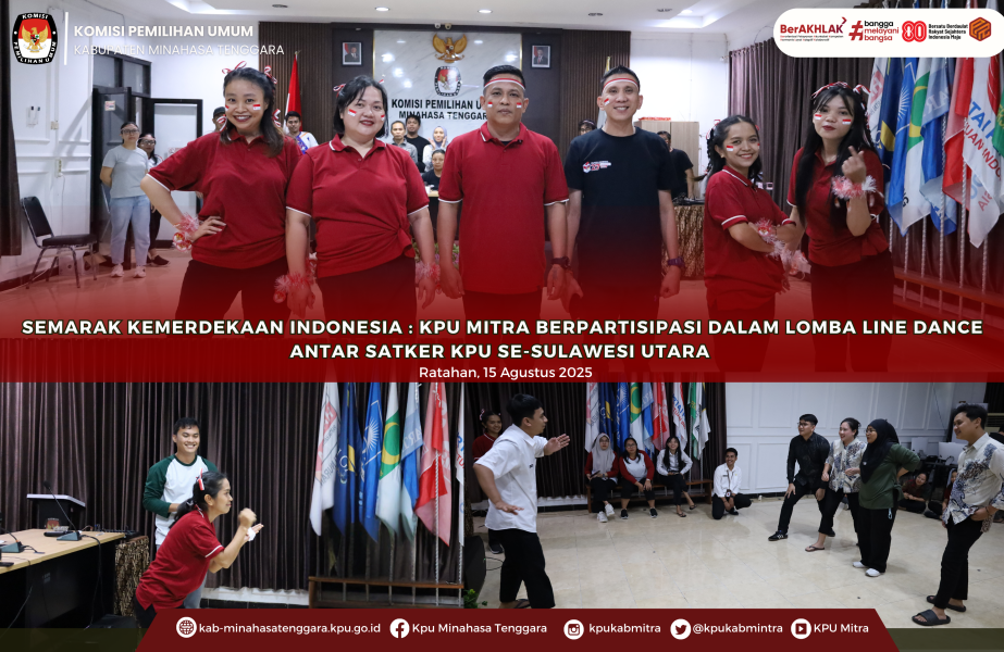 Ratahan - Dalam rangka memeriahkan Hari Ulang Tahun Kemerdekaan Republik Indonesia ke-80 Tahun, KPU Minahasa Tenggara turut berpartisipasi dalam ajang Lomba Line Dance antar satuan kerja (Satker) KPU yang diselenggarakan oleh KPU Provinsi Sulawesi Utara secara hybrid (Luring dan daring), Jumat (15/8/2025).