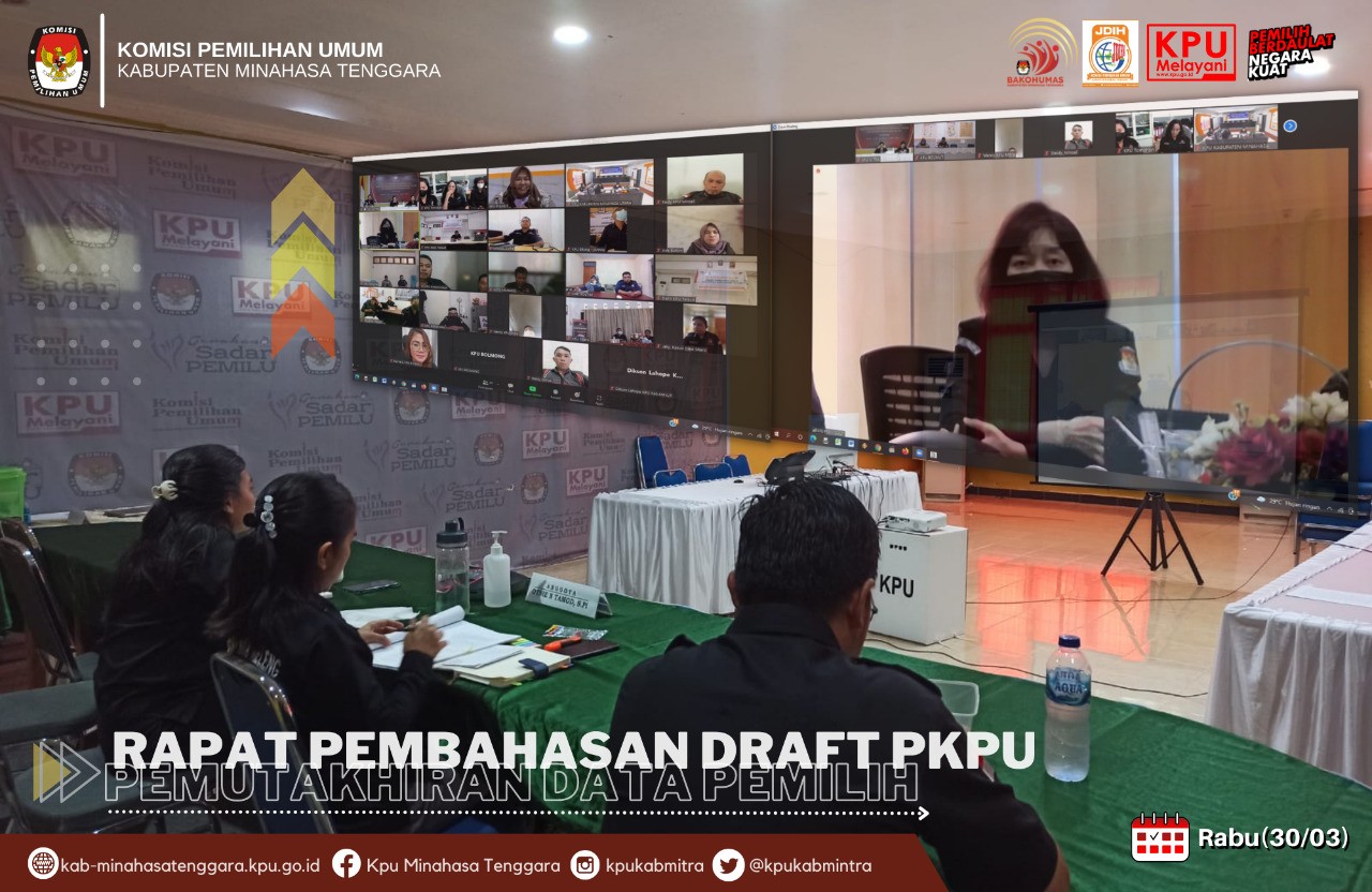 RATAHAN – Komisi Pemilihan Umum Kabupaten Minahasa Tenggara (KPU Mitra) mengikuti Rapat Pembahasan Draft Peraturan Komisi Pemilihan Umum (PKPU) Pemutakhiran Data Pemilih secara daring melalui aplikasi zoom meeting, Rabu (30/03/2022)