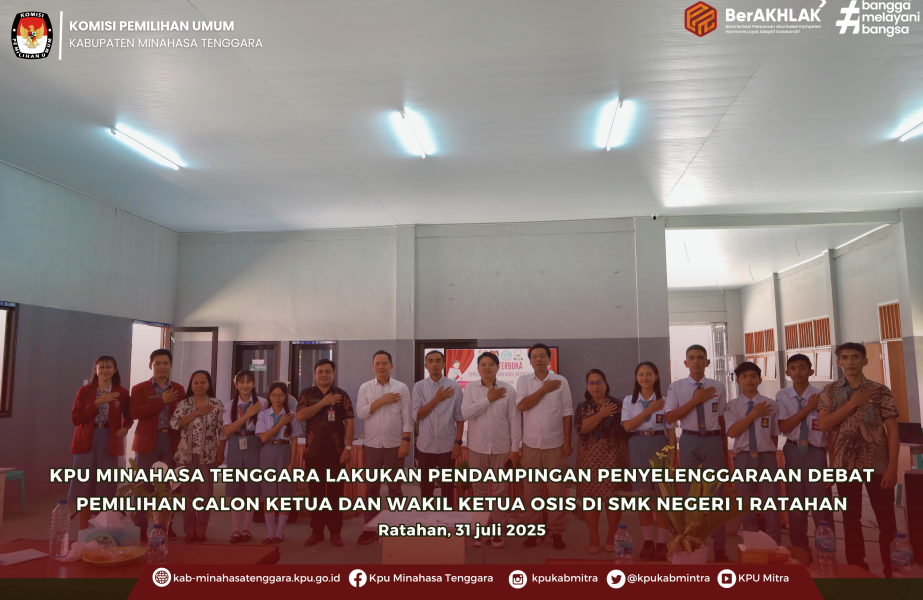 Tanamkan Pendidikan Demokrasi Sejak Dini, KPU Minahasa Tenggara Lakukan Pendampingan Penyelenggaraan Debat Terbuka Calon Ketua dan Wakil Ketua OSIS SMKN 1 Ratahan