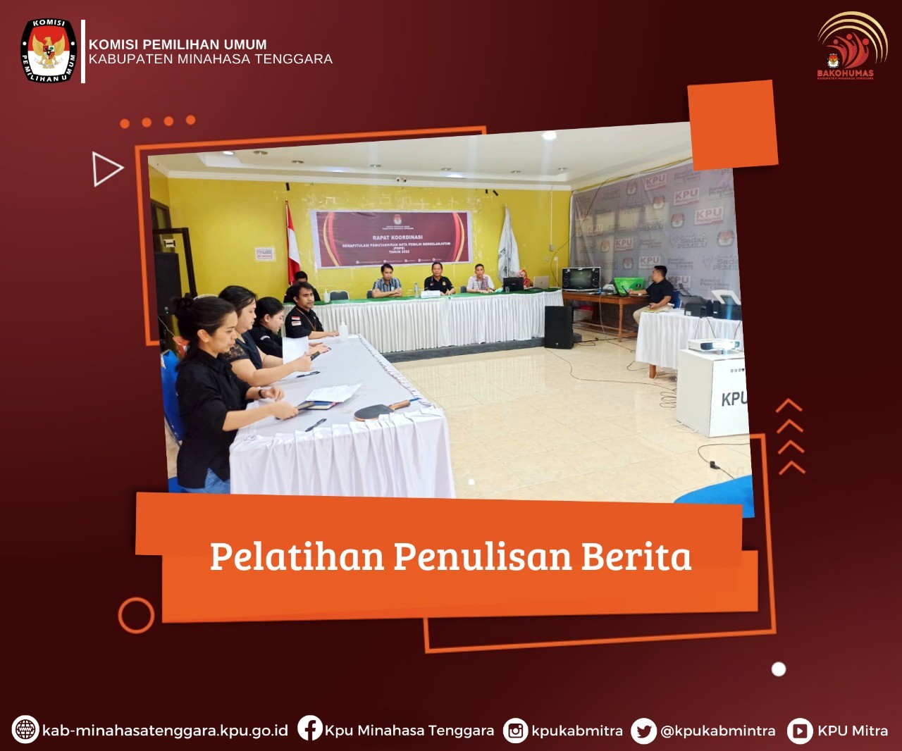 Ratahan, kab-minahasatenggara.kpu.go.id - Komisi Pemilihan Umum (KPU) Kabupaten Minahasa Tenggara (Mitra) menaruh fokus dan perhatian pada keterampilan dalam menulis berita guna melahirkan Sumberdaya Manusia (SDM) yang berkompeten dan cakap di bidang jurnalistik, khususnya bagi tim Badan Koordinasi Hubungan Masyarakat (Bakohumas), admin website dan Jaringan Dokumentasi dan Informasi Hukum (JDIH) yang dapat menunjang setiap kegiatan dan tahapan yang diselenggarakan.